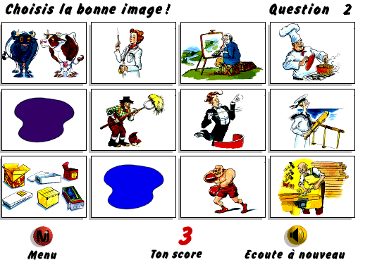 Meget tidligt i et forløb er det muligt at bruge CD-ROM, da der findes udmærkede programmer, der er beregnet på begyndere. De to CD-ROM-plader, som jeg har brugt til en hel klasse, hedder "Jeux d'Images Multimédia" (EuroTalk, PC/MAC, ca. 400 kr) og "Ecoutez Bien" (EuroTalk, PC/MAC, ca. 500 kr)